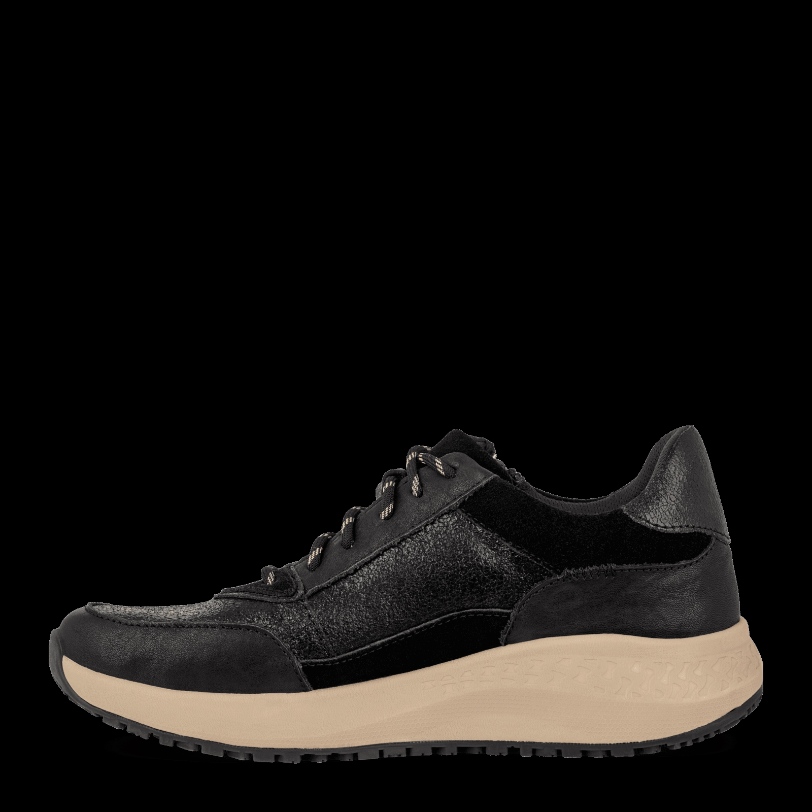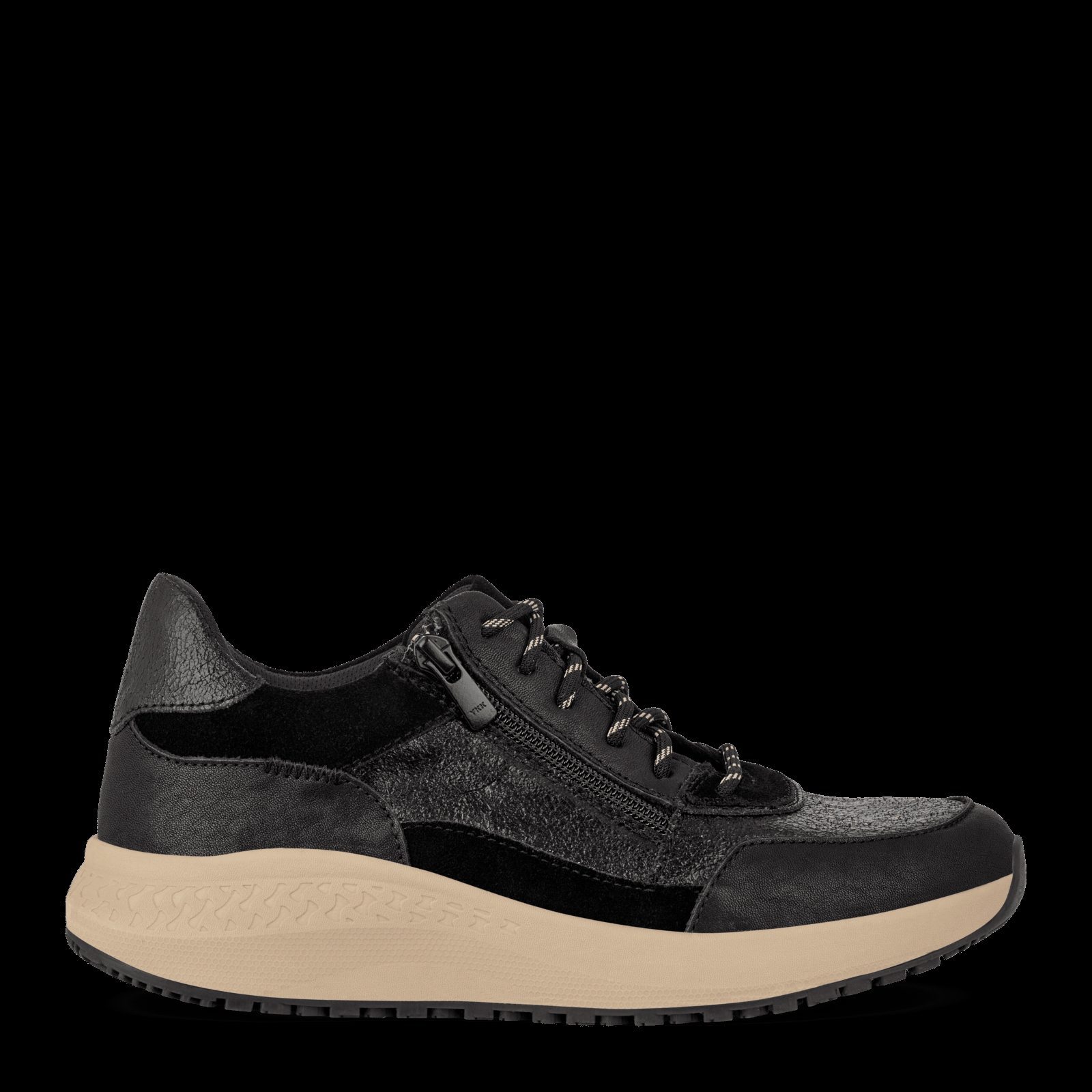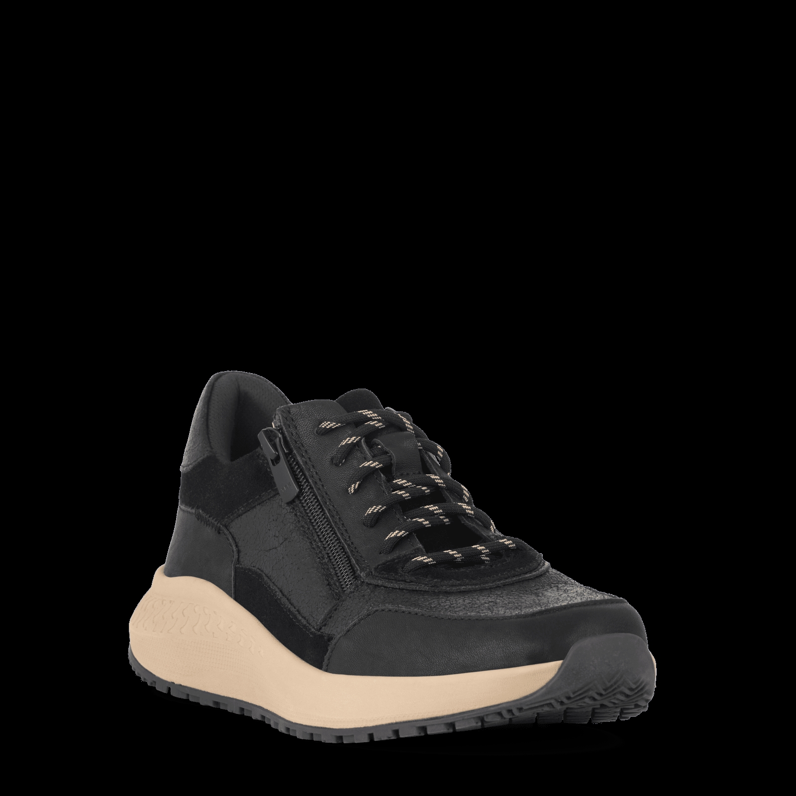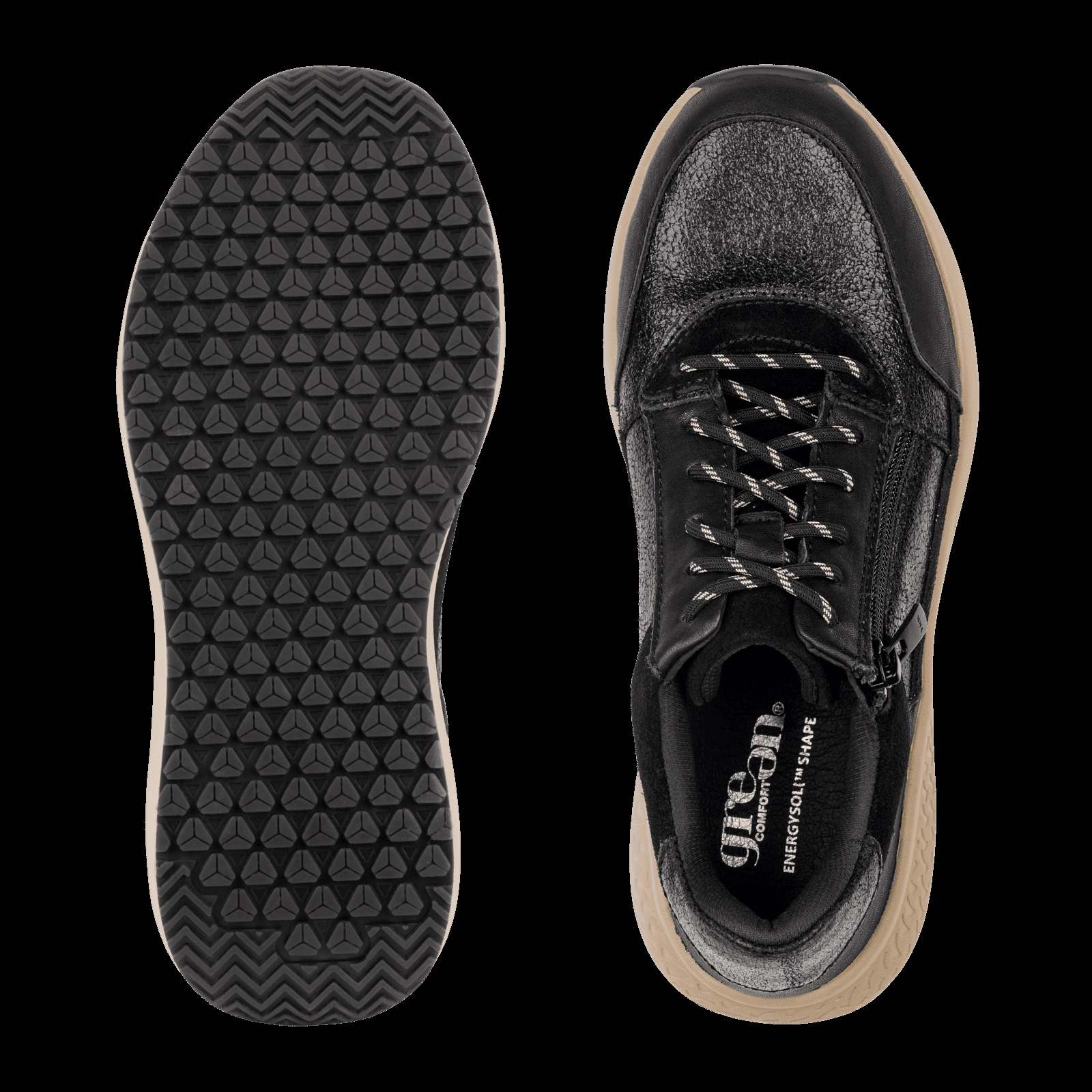 Sort Zigga Zoya sko fra Green Comfort. Skoen har både snørebånds og lynlås, der gør skoen nem og hurtig at iføre sig samt let at tilpasse til din pasform. Dens udtaglige 4,5 mm EnergySole™ Shape indersål, med stødabsorbering. Skoen er lavet i  materialerne glat skind og diskrete ruskindsdetaljer.