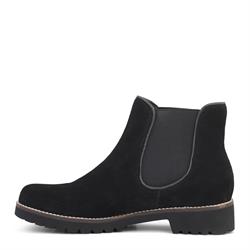 Klassisk men smart Green Comfort støvle i ruskind i farven 'Sort'. Støvlen har elastik i begge sider, hvilket betyder, at den er dejlig nem at hoppe i. Indeni er den konstrueret af Soft Tex foer, hvilket er et mikrofiber der tillader 6 gange så stort fugtighedstransport som læder. Fugten bliver hurtigt absorberet, så dine fødder holdes tørre og varme.