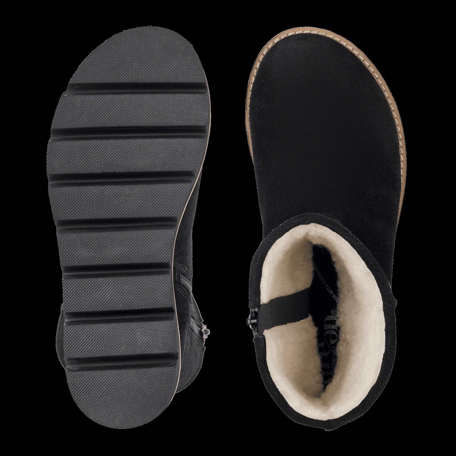 Sorte Veronna Vienna bamsestøvler i ruskind fra Green Comfort. Varm og dejlig bamsestøvle med uldfoer. Lynlåsen er på indersiden, og gør det nemt og hurtigt at iføre sig støvlen.