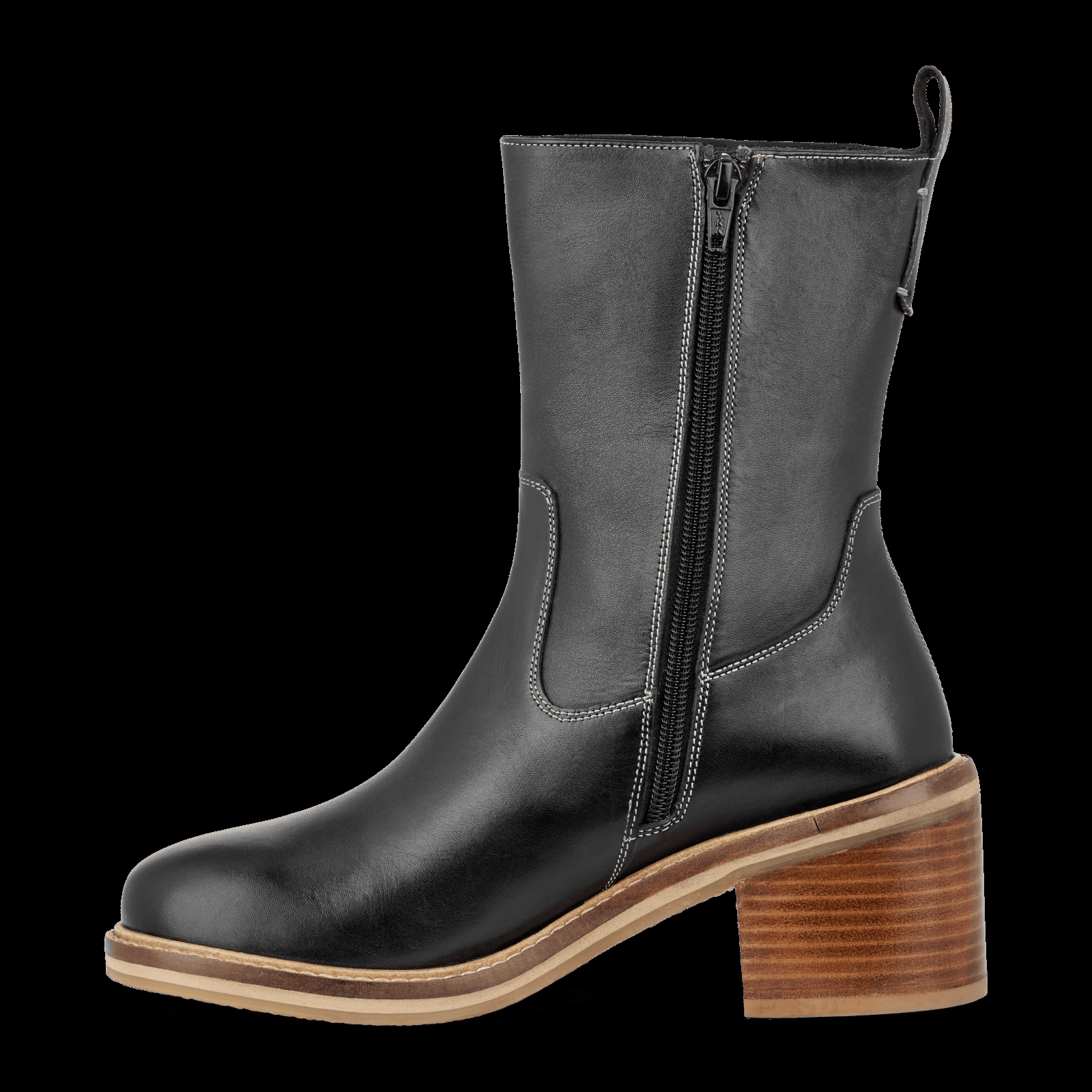 Sort Barcelona Beth støvle i glat skind fra Green Comfort. Støvlen har en blokhæl på 6 cm, og en lynlås på indersiden. Inde i støvlen finder du en udtagelige 4 mm EnergySole™ indersål med stødabsorbering.