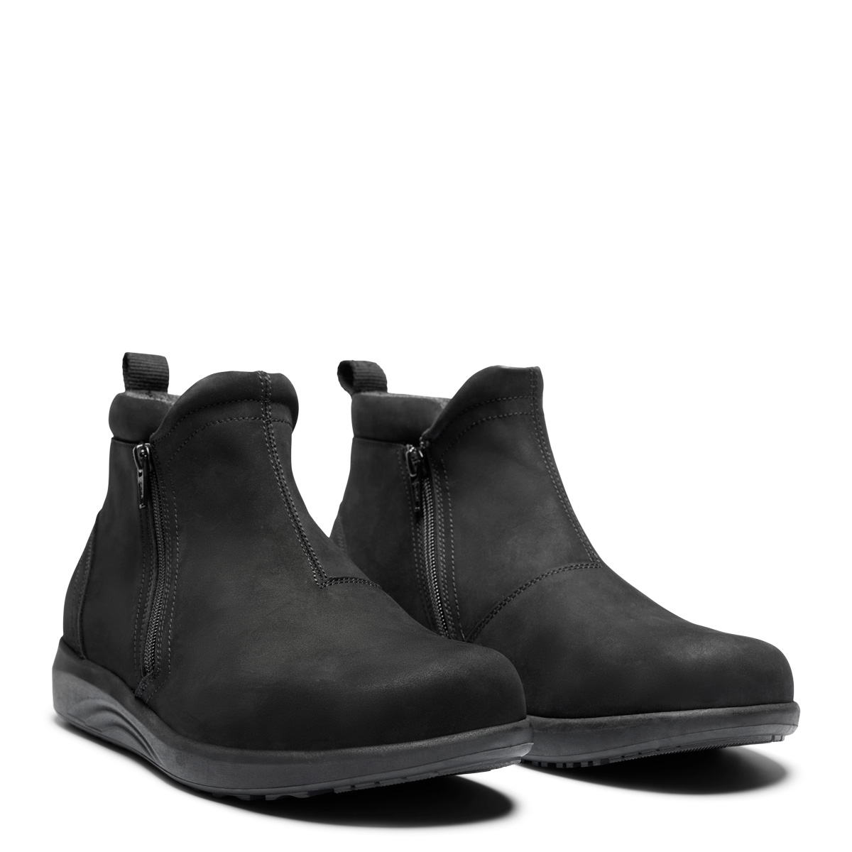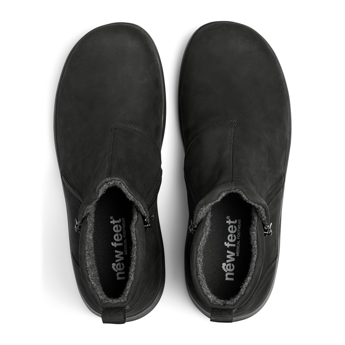 Praktisk og komfortabel flot sort herrestøvle i nubuk, med lynlåse på begge sider, der gør den nem at tage af og på. Støvlen har et Picos©-for med vandafvisende TEX-membran, som holder fødderne tørre i al slags vejr. Den fleksible TR-ydersål har let gængefunktion, der giver en naturlig og behagelig gang. Indvendigt finder du en udtagelig 6 mm stødabsorberende Protektor® indlægssål, som giver ekstra komfort og beskytter mod stød og belastninger.
