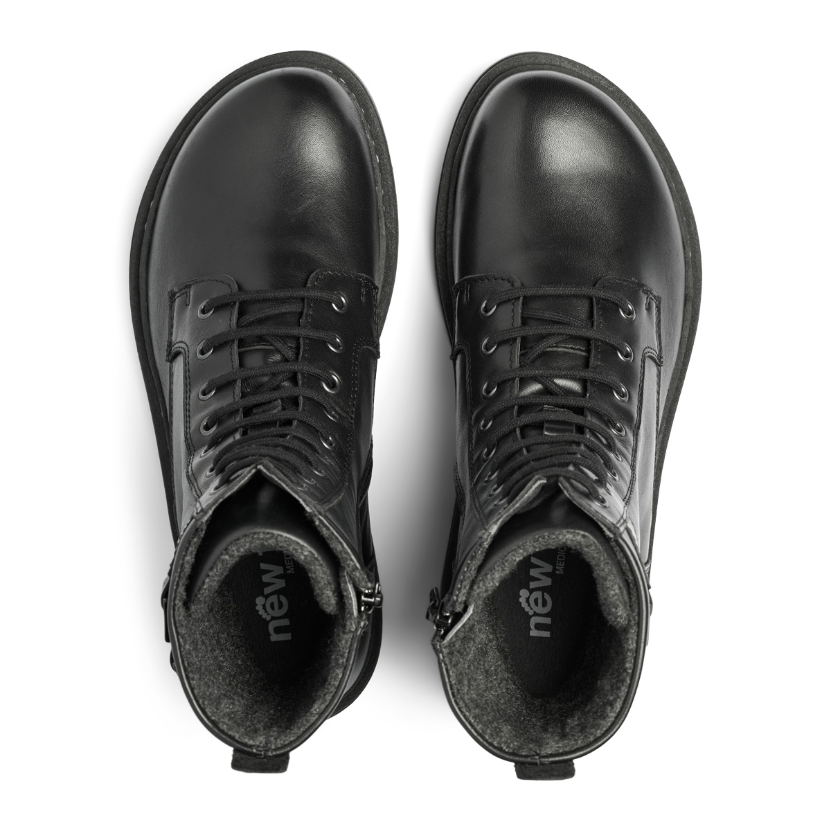 Kastanjebrune støvler fra New Feet, med både snørebånd og lynlås, Picos©-for med en vandafvisende TEX-membran. Støvlen har et lækkert design der gør støvlen mere elegant. Inde i skoen er en let udtaglig 6 mm stødabsorberende Protektor®-indersål. Samt en TR ydersål.