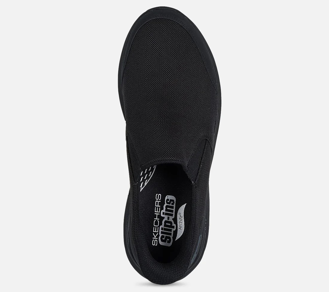 Skechers Hands Free Slip-ins®: Arch Fit® GO WALK® Stability 2.0 - Charles. Skoen har en udtagelig Arch Fit® indersål, som reducerer stød samt tilpasser sig din fød. 100 % veganske materialer. Den har Hands Free Slip-ins® hælkappe.