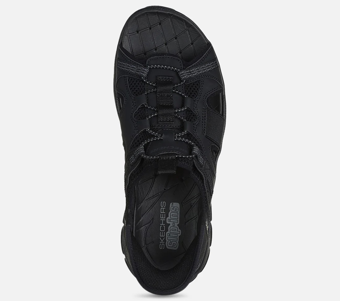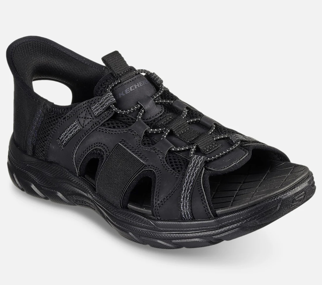 Skechers Hands Free Slip-ins® Relaxed Fit®: Revolted – Merrick. Denne sandal er designet med Heel Pillow™. Sandalen har Hands-free Skechers Slip-ins® hælkappe, hvilket gør sandalen nem og hurtig at tag på.